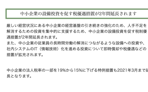 中小企業の設備投資を促す税優遇措置が二年間延長されます